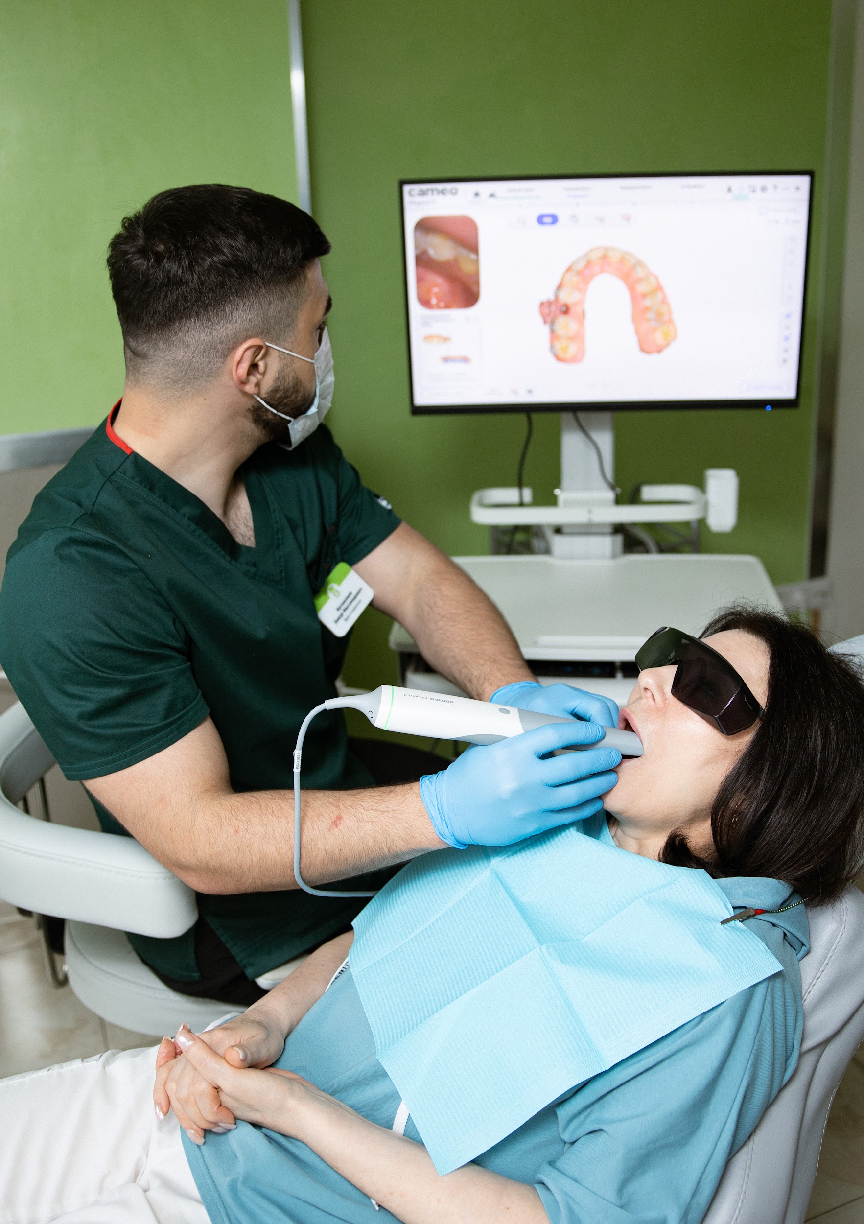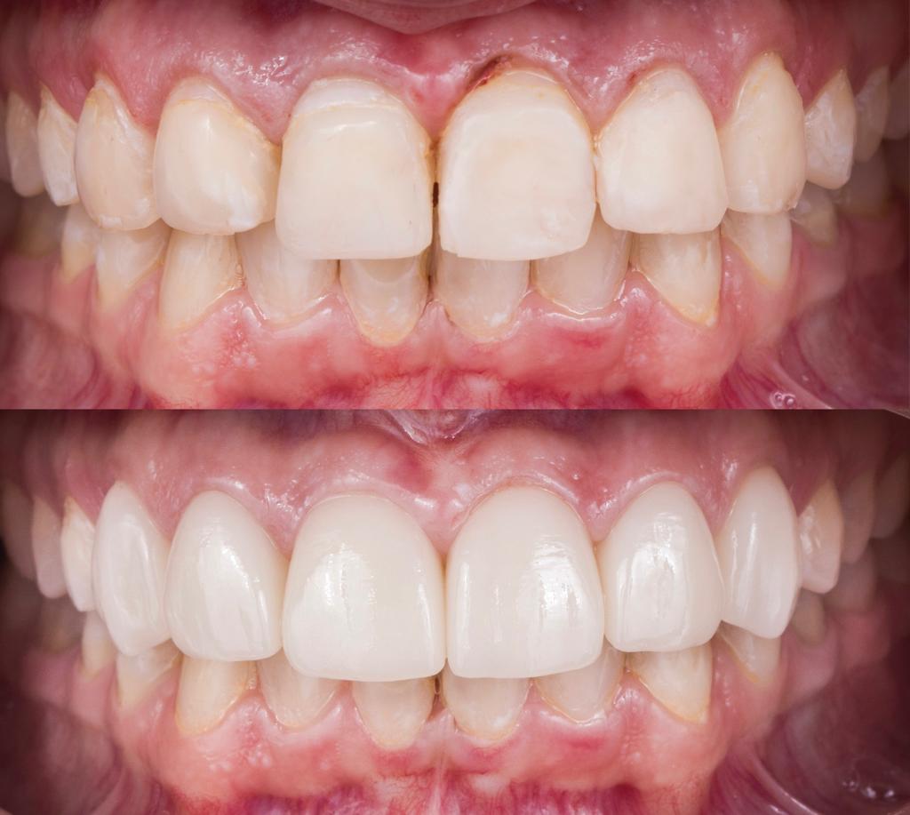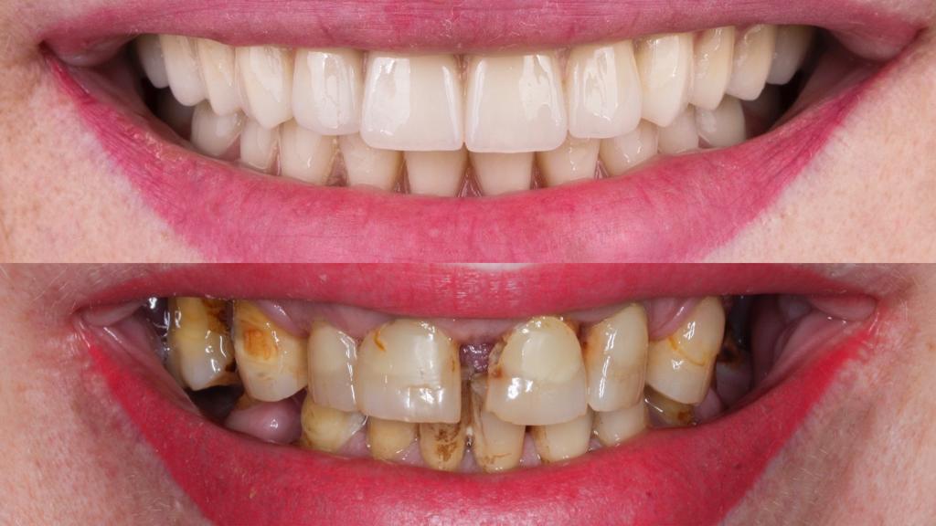 На передних зубах изготовлены виниры и коронки Emax. Задние зубы восстановлены мостовидными протезами