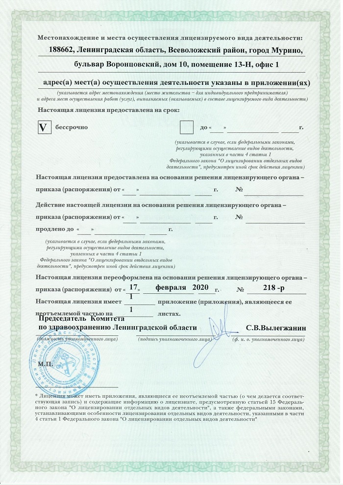 Выдана Комитетом по здравоохранению Ленинградской области