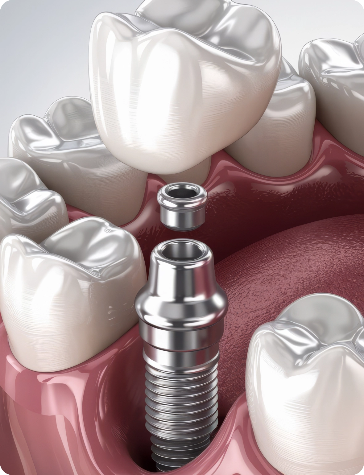 После успешного приживления устанавливают абатмент и ортопедическую конструкцию (коронку, мост).